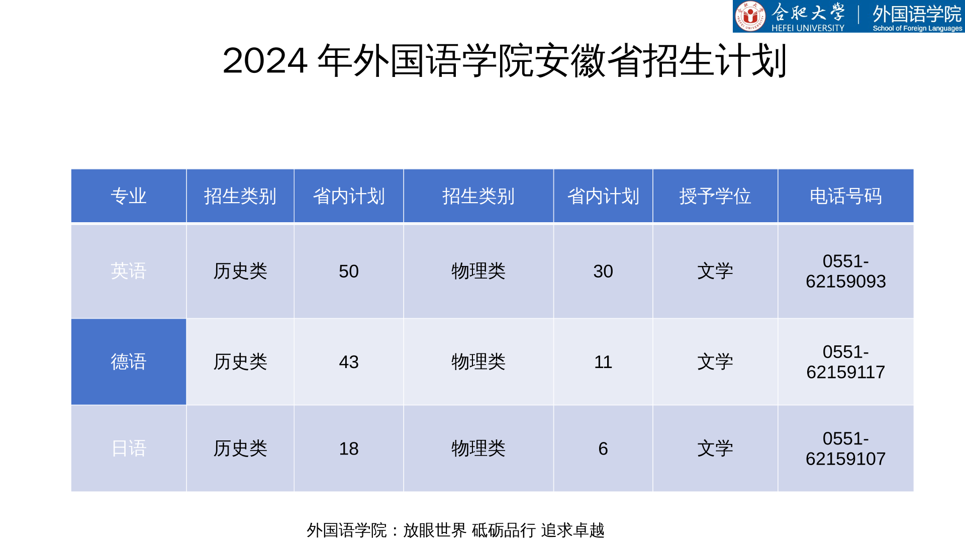 2024年外國(guó)語(yǔ)學(xué)院安徽省招生計(jì)劃