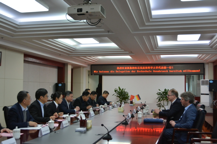 奧斯納布呂克應(yīng)用科學(xué)大學(xué)工程與計算機(jī)科學(xué)學(xué)院院長諾伯特·巴爾曼介紹了學(xué)院的情況、本科及碩士專業(yè)的人才培養(yǎng)模式,他期待本次訪問更好推進(jìn)兩校合作共建新專業(yè)。馬蒂亞斯·瑞克茨格爾介紹了負(fù)責(zé)的車輛工程、工業(yè)設(shè)計等專業(yè)情況。