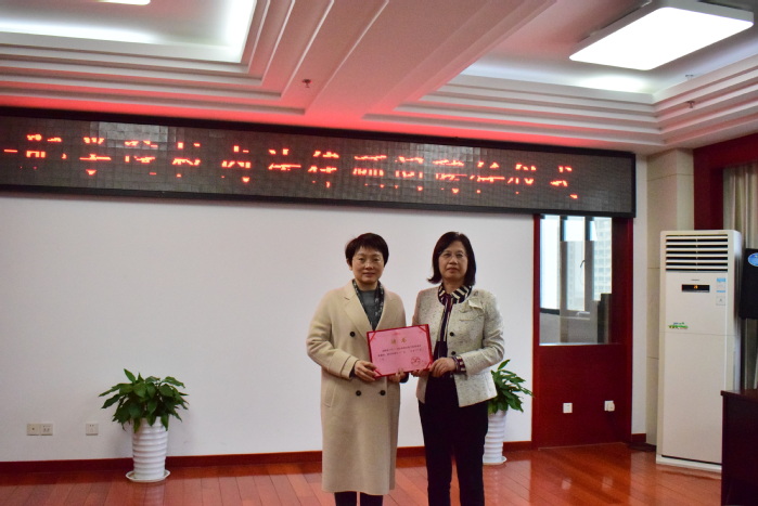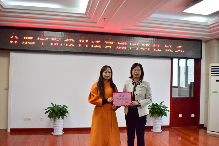 儀式上,吳春梅為陳江華、吳曉紅、江玉榮三位法律顧問頒發(fā)聘任證書。