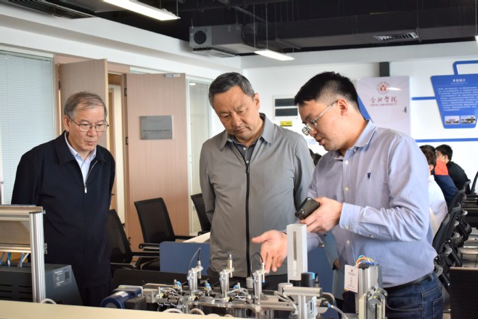 吳俊清一行還來到了中德教育合作示范基地,實(shí)地考察了大眾學(xué)院,聽取了相關(guān)負(fù)責(zé)人關(guān)于大眾學(xué)院基本情況、人才培養(yǎng)機(jī)制、國際交流合作和產(chǎn)學(xué)研合作、建設(shè)成效等情況的匯報,參觀了智能制造產(chǎn)教融合實(shí)踐中心、數(shù)字孿生技術(shù)及應(yīng)用工程中心等實(shí)驗(yàn)室,深入了解學(xué)生科研學(xué)習(xí)及產(chǎn)教融合項(xiàng)目開展情況。吳俊清指出,大眾學(xué)院要充分發(fā)揮自身優(yōu)勢,在應(yīng)用型人才培養(yǎng)方面做出更多的探索,進(jìn)一步提高應(yīng)用型人才培養(yǎng)質(zhì)量。