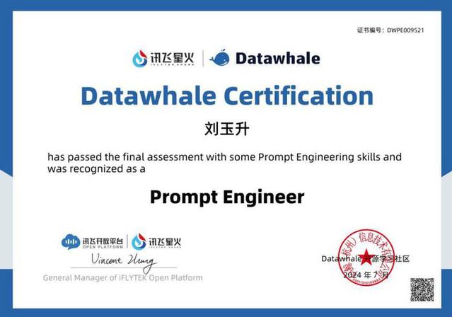 2024年6月至9月,在導(dǎo)師推薦下,劉玉升通過選拔進(jìn)入科大訊飛股份有限公司訊飛數(shù)碼研究院實(shí)習(xí),深度參與了訊飛星火大模型的研發(fā)工作,主要負(fù)責(zé)Prompt工程優(yōu)化任務(wù)。憑借扎實(shí)的專業(yè)基礎(chǔ)和出色的工程能力,他系統(tǒng)性地完成了各類任務(wù)的整編工作,通過深入分析客戶需求,制定了差異化的Prompt優(yōu)化策略。在數(shù)據(jù)處理層面,他運(yùn)用Python對訓(xùn)練數(shù)據(jù)進(jìn)行清洗與統(tǒng)計分析,成功構(gòu)建了包含10萬余條的高質(zhì)量SFT數(shù)據(jù),覆蓋33個具體任務(wù)場景。此外,他還參與了大模型效果的評測工作,為后續(xù)模型的迭代優(yōu)化提供了支持。