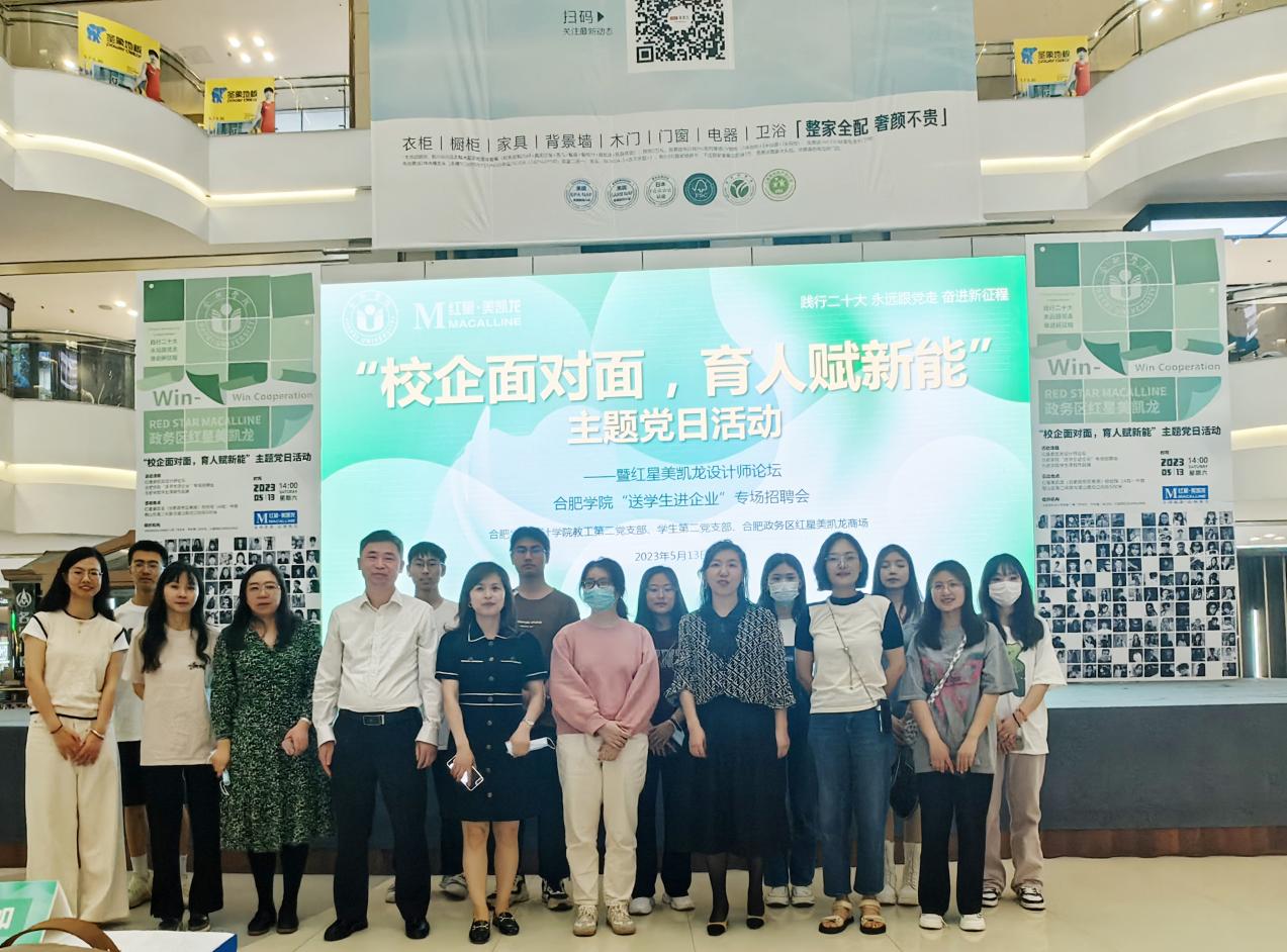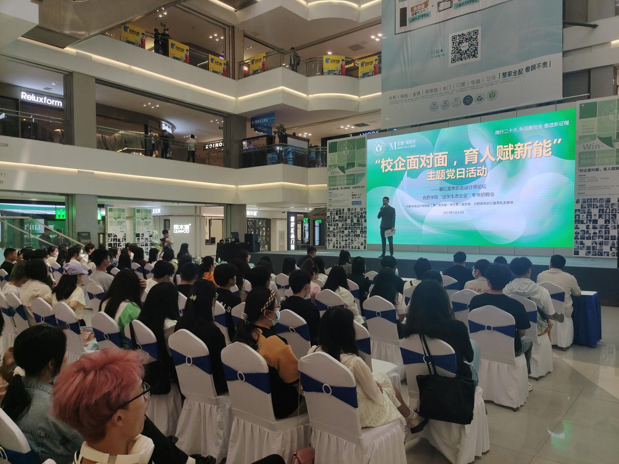 為提升設(shè)計(jì)學(xué)院教工、學(xué)生黨支部建設(shè)水平,發(fā)揮黨員特色服務(wù)先鋒作用,進(jìn)一步拓寬畢業(yè)生就業(yè)渠道,提升精準(zhǔn)就業(yè)服務(wù)水平,5月13日,合肥學(xué)院設(shè)計(jì)學(xué)院教工第二黨支部、學(xué)生第二黨支部聯(lián)合紅星美凱龍?jiān)?/span>政務(wù)區(qū)紅星美凱龍商場(chǎng)舉辦了“校企面對(duì)面,育人賦新能”主題黨日活動(dòng)暨紅星美凱龍?jiān)O(shè)計(jì)師論壇。設(shè)計(jì)學(xué)院教工第二黨支部書(shū)記、空間設(shè)計(jì)系主任水源、徐賢如、呂琴琴、張行舟等專(zhuān)業(yè)老師出席,學(xué)生第二黨支部全體黨員參加。