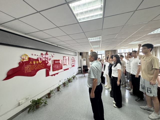 隨后,為慶祝中國共產(chǎn)黨成立104周年,加強對新發(fā)展黨員的理想信念教育,張永軍領(lǐng)誓,新發(fā)展黨員面對黨旗莊嚴宣誓。