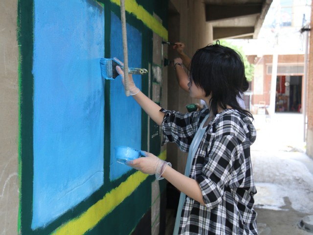 活動當日,實踐團兵分兩路,開啟“雙線并行”的特色實踐。實踐組以風箏為靈動畫布,與當?shù)厣倌陜和瘮y手共繪心中的美麗鄉(xiāng)村圖景;墻繪組則將斑駁村墻化作文化長廊,以藝術筆觸勾勒鄉(xiāng)村文脈,為和美鄉(xiāng)村建設增添獨特的美學注腳。