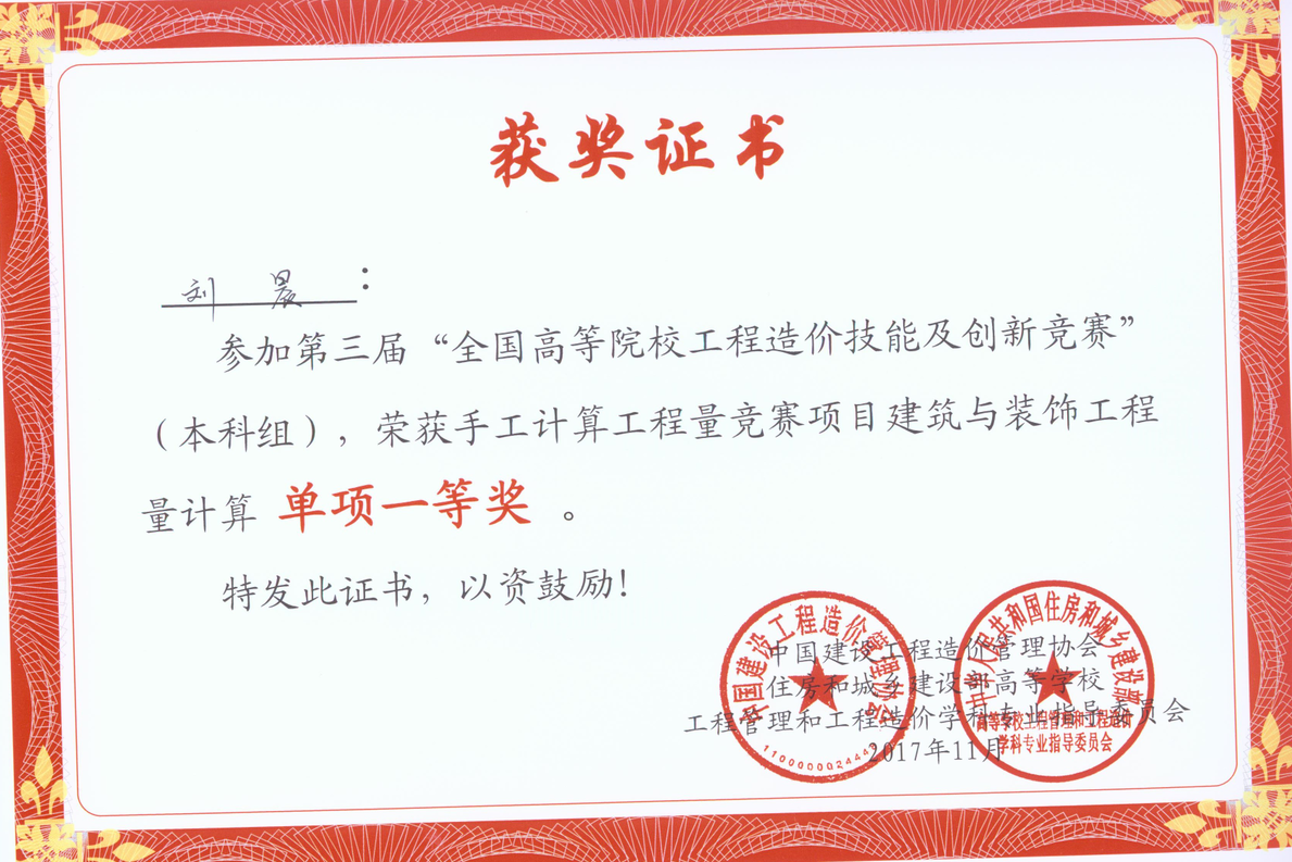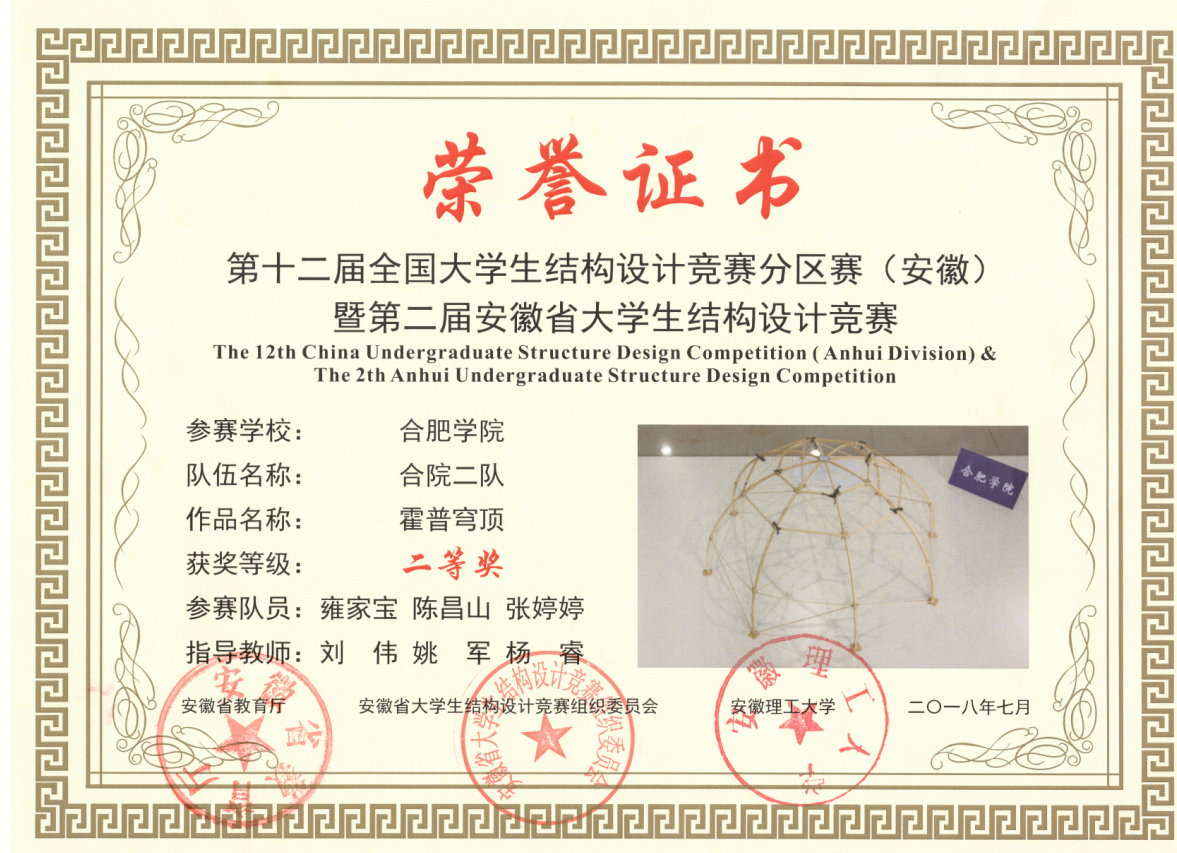 近三年,我校土木工程專業(yè)學(xué)生在第十屆(第十一屆、第十二屆)“高教杯”全國大學(xué)生先進(jìn)成圖與信息建模大賽中獲得3個(gè)專項(xiàng)一等獎(jiǎng),2個(gè)專項(xiàng)二等獎(jiǎng),6個(gè)專項(xiàng)三等獎(jiǎng);第十屆(第十一屆、第十二屆)全國周培源大學(xué)生力學(xué)競賽二等獎(jiǎng)1項(xiàng),三等獎(jiǎng)6項(xiàng);第一屆(第二屆、第三屆)安徽大學(xué)生結(jié)構(gòu)設(shè)計(jì)大賽團(tuán)體2個(gè)三等獎(jiǎng),二等獎(jiǎng)一項(xiàng),三等獎(jiǎng)一項(xiàng);安徽省第一屆BIM大賽三等獎(jiǎng)一項(xiàng)。多次組織“力與美”硬幣造型比賽、CAD大賽、周培源力學(xué)競賽選拔賽、測量技能競賽等競賽。