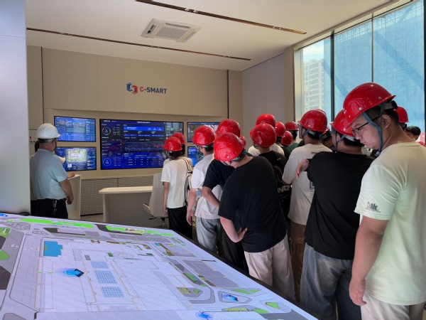 海恒國際體驗(yàn)式商業(yè)街區(qū)項(xiàng)目位于合肥經(jīng)開區(qū)習(xí)友路與錦繡大道交口東北角,擬建商業(yè)綜合體、超高層酒店及相關(guān)配套設(shè)施,規(guī)模大,業(yè)態(tài)復(fù)雜,對施工技術(shù)、項(xiàng)目管理以及各專業(yè)間的協(xié)同配合提出了極高要求。這為土木專業(yè)學(xué)生提供了絕佳的實(shí)踐平臺和觀摩學(xué)習(xí)機(jī)會。該項(xiàng)目由中建國際工程有限公司、中國能建安徽電建二公司承建,實(shí)習(xí)期間,現(xiàn)場負(fù)責(zé)人首先對同學(xué)們進(jìn)行了嚴(yán)格的安全教育,強(qiáng)化“安全第一”的工程意識,接著重點(diǎn)向同學(xué)們介紹了裝配式樣板間建設(shè)、高支模施工工藝以及智慧工地等內(nèi)容,最后針對施工過程中存在的問題與同學(xué)們進(jìn)行了深入交流,使得學(xué)生對智能化建筑施工及管理有了更新的認(rèn)識。