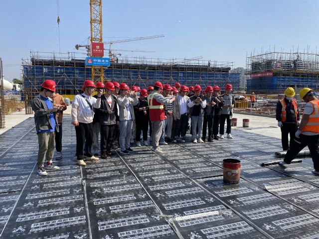 中建國(guó)際項(xiàng)目工程技術(shù)人員針對(duì)目前項(xiàng)目上正在開(kāi)展的混凝土構(gòu)件施工、疊合板施工、預(yù)制樓梯吊裝、防水卷材鋪設(shè)等向同學(xué)們?cè)敿?xì)介紹了施工工藝以及技術(shù)要點(diǎn)。