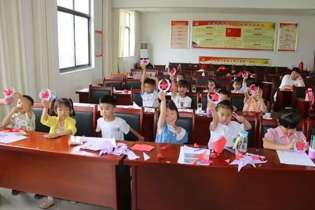 73日上午九點(diǎn)三十分,“傳星星之火,憶百年黨恩”志愿團(tuán)在太平畈鄉(xiāng)村委會(huì)會(huì)議室舉辦了“紅心寄于紙,紙上生紅星”手工折紙活動(dòng)。