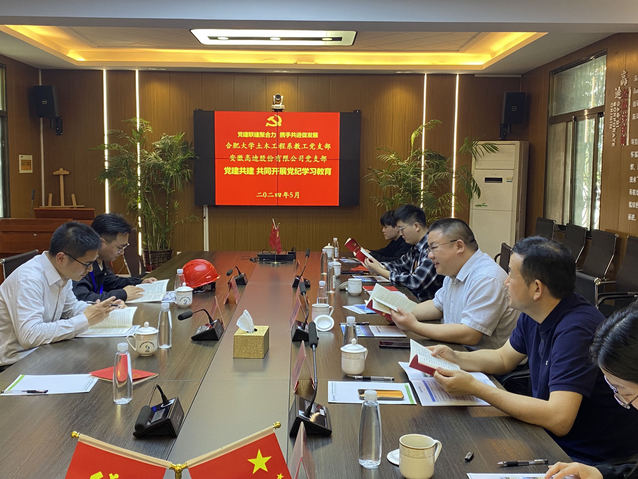 為深入學(xué)習(xí)貫徹《中國共產(chǎn)黨紀律處分條例》(以下簡稱《條例》),拓展黨紀學(xué)習(xí)教育形式,推動校企合作深度融合,2024年5月8日上午,城建學(xué)院土木工程系教工黨支部與安徽高迪股份有限公司黨支部開展“黨建聯(lián)建聚合力,攜手共進促發(fā)展”黨建共建活動。城建學(xué)院副院長劉偉帶隊,支部部分黨員教師參加。