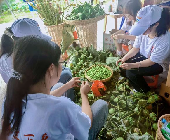 活動(dòng)期間,志愿者們協(xié)助荷花基地開(kāi)展豐富多彩的助農(nóng)活動(dòng)。在銷(xiāo)售線(xiàn)上荷花池烏篷船票的過(guò)程中,志愿者向游客們?cè)敿?xì)介紹荷花池的盛景,耐心地解答游客們的各種問(wèn)題;幫助農(nóng)戶(hù)剝蓮蓬取蓮子,并積極宣傳和推廣荷花系列產(chǎn)品,幫助農(nóng)戶(hù)拓寬銷(xiāo)售渠道,為農(nóng)民帶來(lái)經(jīng)濟(jì)效益的同時(shí)也讓更多的人了解到荷花文化的魅力。
