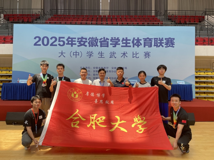 6月18日至23日,2025年安徽省體育聯(lián)賽大學生武術比賽在宿州學院舉行。全省44個代表隊、590名運動員參加比賽,我校武術隊在毛獻亮、徐軍老師的指導下,參加了長拳、南棍、南拳、對練等7個項目的比賽,獲得2金2銀的優(yōu)異成績。其中,孫晨榮獲男子甲組自選南棍冠軍,徐家豪奪得男子甲組自選長拳冠軍,孫晨在男子甲組南拳獲得亞軍,徐家豪、孫晨、王星墨組成的對練隊伍在甲組對練項目中摘得銀牌。